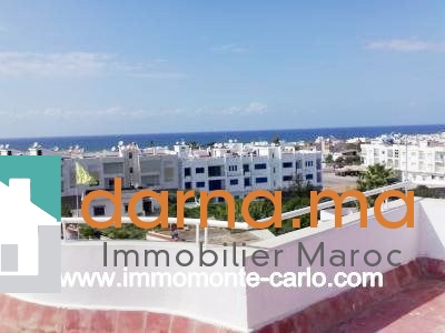 A louer appartement avec terrasse vue sur mer Rabat Harhoura bien meublé et équipé, situé dans une résidencesécurisée bien ensoleillée avec jardin et garage, à 500 mètres de la plage, 2 façades avec balcon comportant une cuisine équipée avec buanderie, salon, chambre parental, chambre enfant, salle d’eau, salle de bain, Pour plus d’informations ou visite n’hésitez pas de contacter notre agence immobilière Immo Monte-Carlo au N° de tél: +212661464037/ +212661212547ou Tél/Fax: +212537755043 ou par E-mail : Cette adresse e-mail est protégée contre les robots spammeurs. Vous devez activer le JavaScript pour la visualiser. ou visitez notre site www.immomonte-carlo.com ou rendez-vous au 15. Av, Al Abtal N°4, Agdal RABAT MAROC.