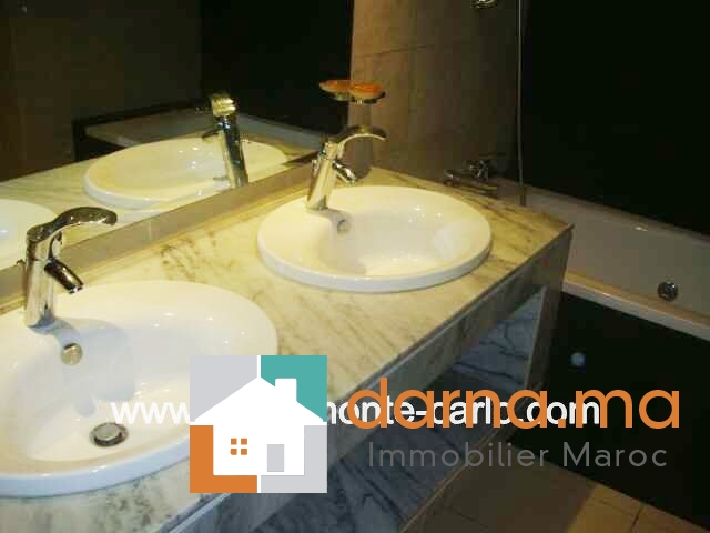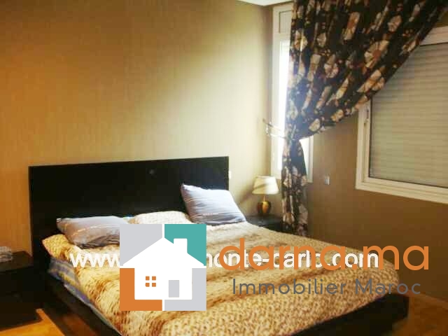 Un bel appartement meublé équipements haut de gamme, d'une superficie de 176 m², dans une résidence fermée, sécurisée ensoleillé et bien aéré à louer dans un quartier calme, composé : double salon avec coin cheminée, terrasse, lave mains invités avec deux vasques, hall,  3chambres avec balcons, bivitrée, cuisine  bien équipée avec buanderie, place au garage, ascenseur. Pour plus d’informations ou visite n’hésitez pas de contacter notre agence immobilière Immo Monte-Carlo au N° de tél: +212661464037/ +212661212547ou Tél/Fax: +212537755043 ou par E-mail : Cette adresse e-mail est protégée contre les robots spammeurs. Vous devez activer le JavaScript pour la visualiser. ou visitez notre site www.immomonte-carlo.com ou  rendez-vous au 15. Av, Al Abtal N°4,  Agdal RABAT MAROC.