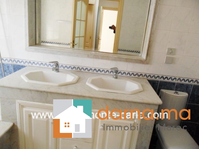 Villa  à louer à Hay Riad à Rabat avec  chauffage central, proche de toutes les commodités dans une rue calme rideaux électriques, énergie solaire, hammam beldi, sécurité.
