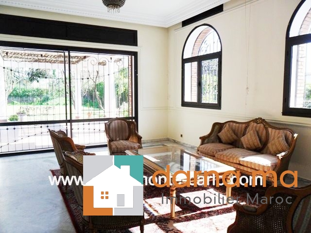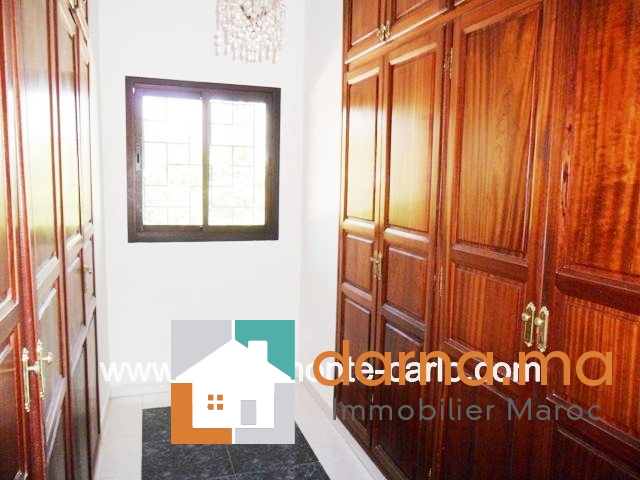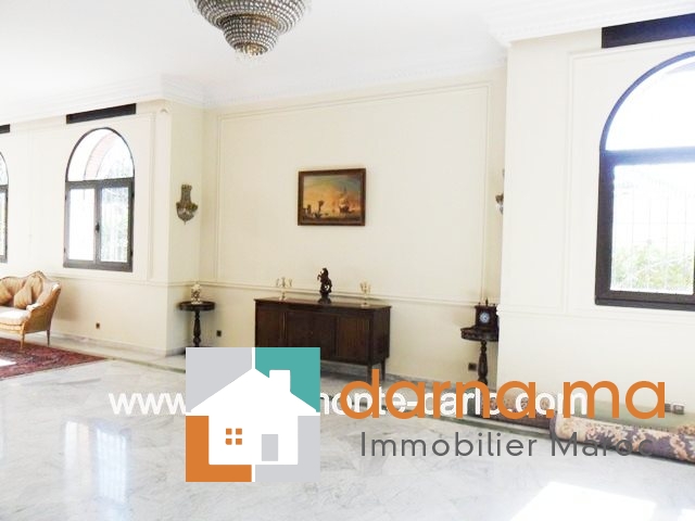 Location une belle villa à Rabat Souissi, villa avec chauffage central sur un terrain de 2000 m², entourée d’un joli jardin, grande garage, villa éclairée et bien placée proches de toutes commodités, composée de 3salons dont un avec cheminée, séjour, un beau grand bureau en mezzanine, 2 terrasses, 4 chambres dont une chambre parental avec dressing et salle de bain, 2salles de bain pour enfants,cuisine équipée et au sous-sol : une deuxième cuisine, salon, 2chambres avec 2salles de bain, bain turque, débarras, buanderie,